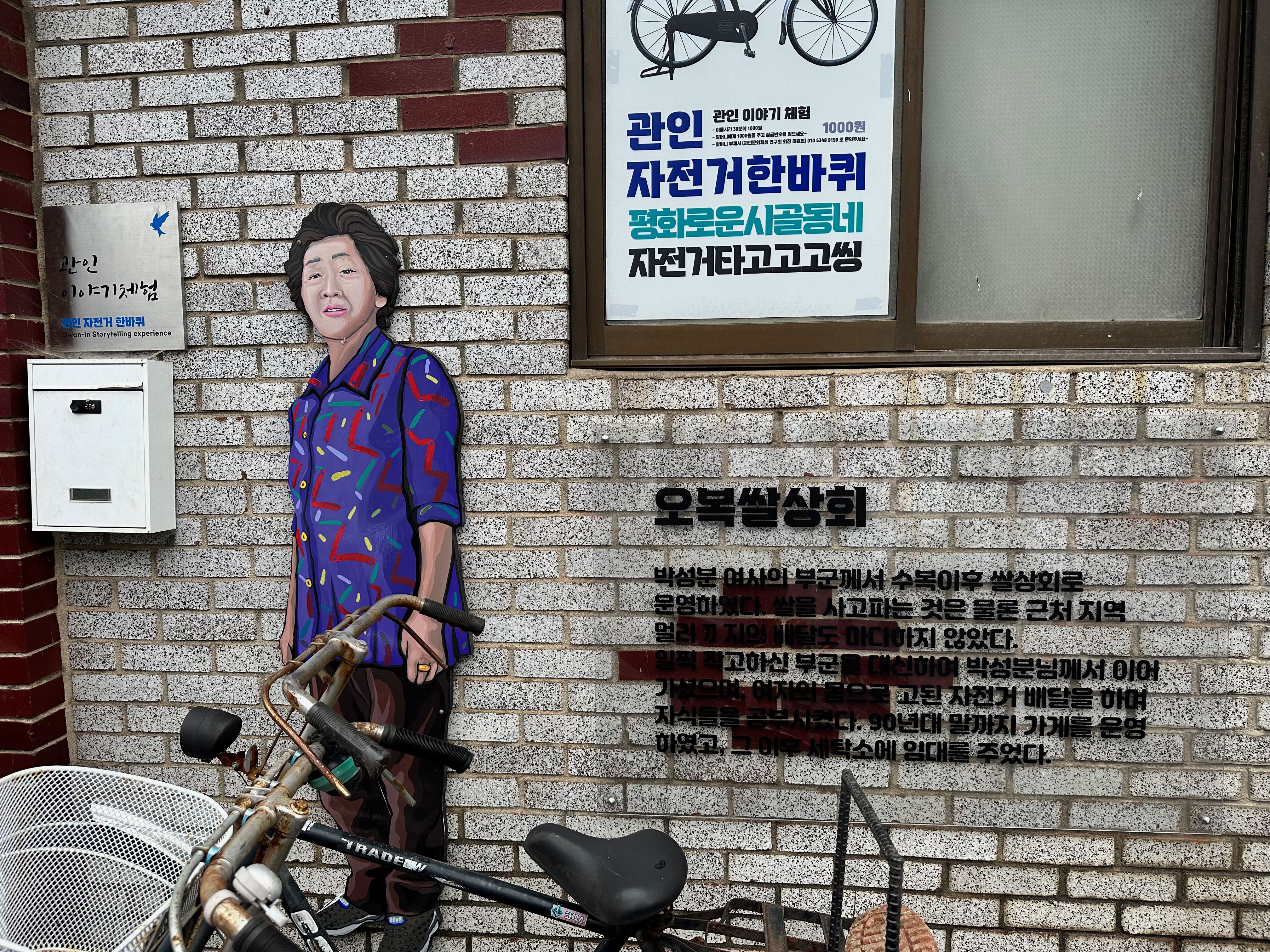 이 마을은 현재 고령층들만 살고 계시고 마을 초입에 있는 관인중학교에는 재학생이 23명 밖에 남지 않아 젊은세대들이 점점 빠져나가고 있기도 합니다. 그래서 마을에 남아있는 분들이 문화 재생 사업을 통해 지역과 마을의 특성을 살려 조금이나마 활기를 찾을 수 있도록 관인문화마을로 탄생시켰습니다. 마을에 살고 계시던 주민들의 얼굴이 그려진 벽화, 예전 그대로의 이발소며 방앗간들은 연세가 지긋하신 분들에게는 향수를 심어주기로 하고, 젊은 층들에게는 레트로 감성을 찾아보는 재미를 안겨주기도 하는 마을입니다. 이렇듯 관인문화마을은 주민협의체 중심으로 마을의 기억과 역사를 담은 골목길 조성, 이북5도 음식 체험, 오래된 간판과 벽을 정비해 아트간판과 조형물 및 벽화를 조성하며 과거 역사를 복원한 특색 있는 마을을 만들어가며 관광활성화를 위해 노력하고 있기도 하답니다.