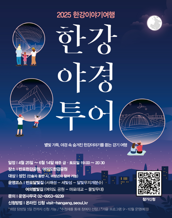 도심에서 즐기는 야경은 흔하지만, 그걸 전문 해설사랑 함께 걸으면서 한강에 얽힌 흥미로운 이야기까지 들을 수 있다? 게다가 무료에요 무료!! 그건 못 참쥬…😆 4월 25일부터 시작해서 6월 14일까지, 매주 금요일과 토요일 저녁 7시부터 8시 30분까지 딱 90분만 투자하면 되거든요?